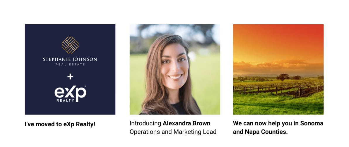 The Stephanie Johnson Group is now serving Sonoma and Napa Counties in addition to San Francisco. It is an exciting time as people move around and redefine their lives, and I want my business to be a part of it. So if you are considering a relocation to the North Bay, or seeking a 2nd home, don’t hesitate to reach out to me for assistance!