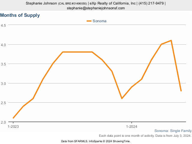 Months Supply of Inventory - Sonoma County Single Family Homes