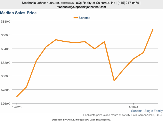 Median Price, Single Family Homes - Sonoma County Through March 2024